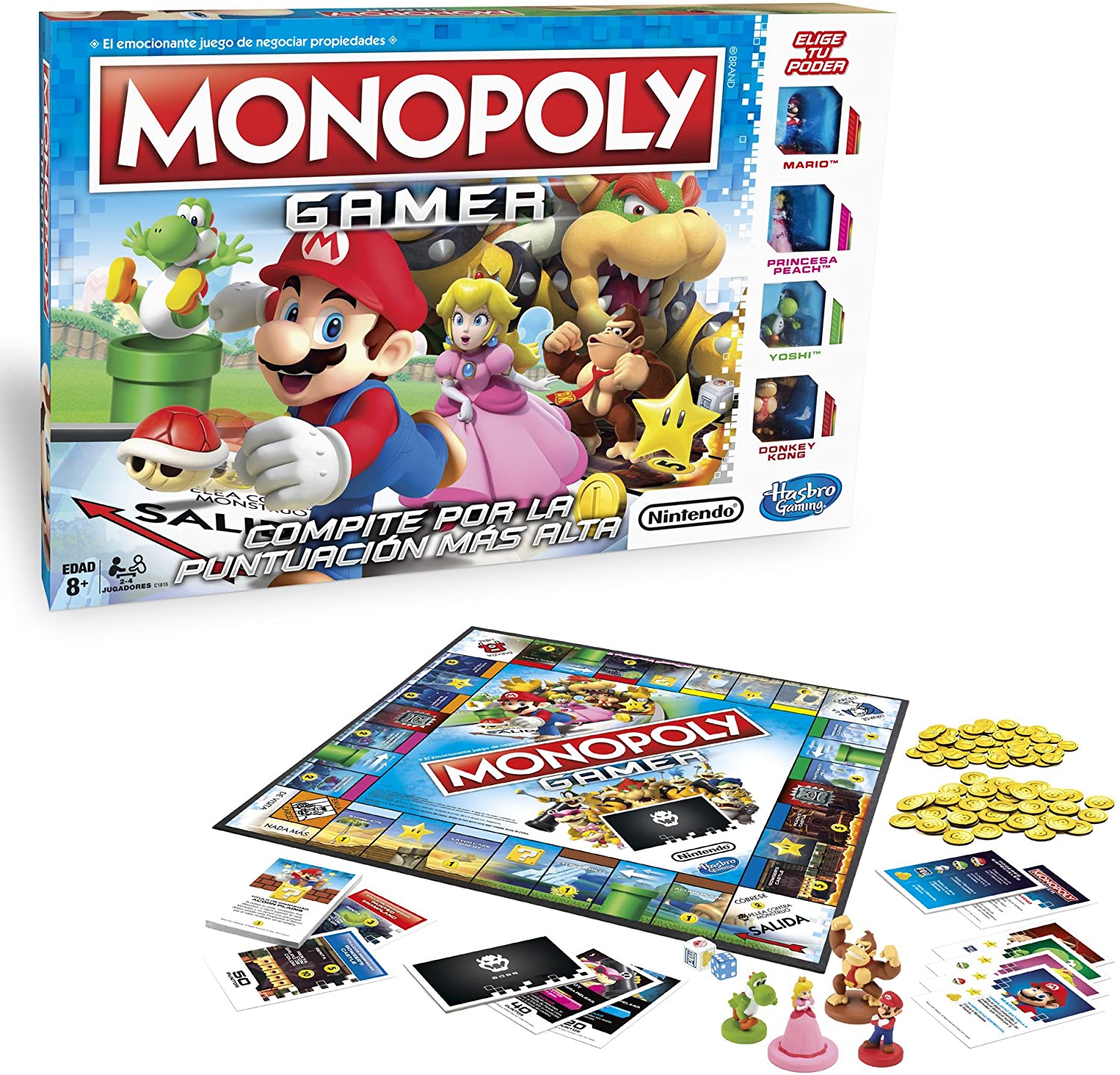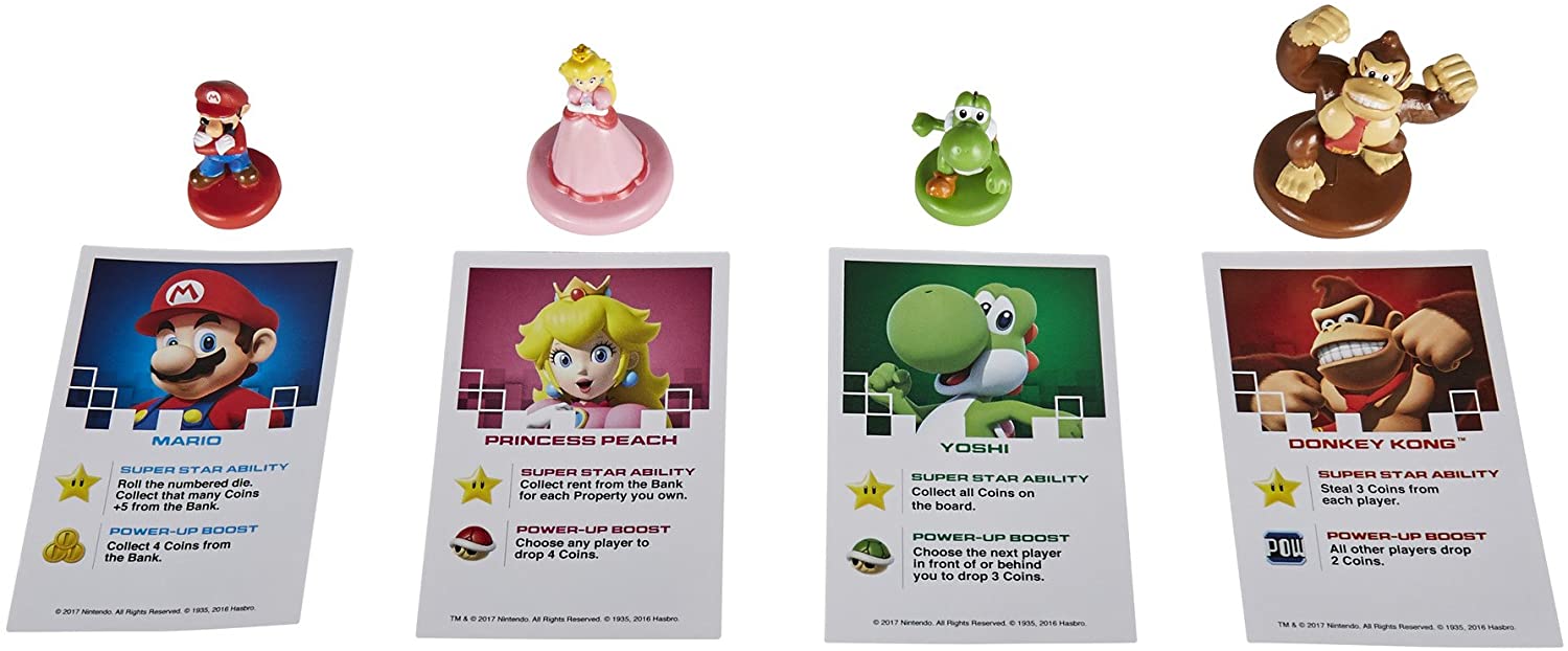Monopoly y Nintendo se unen para darte la versión Monopoly Gamer la cual cuenta con personajes de Super Mario. En esta versión única podrás comprar propiedades, pagar alquiler y recolectar monedas para ser el ganador. El juego termina cuando Bowser haya sido derrotado. El jugador con la puntuación más alta gana.