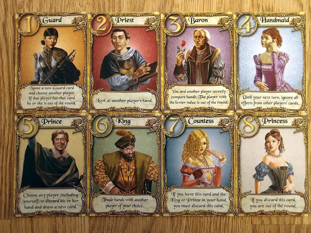Todos los jóvenes elegibles (y muchos de los no tan jóvenes) tratan de hacer que la princesa de la Tempestad. Desafortunadamente, ella se ha encerrado en el Palacio, y usted debe confiar en otros para traer sus cartas románticas a ella. ¿La tuya llegará primero? carta de amor es un juego de riesgo, deducción y suerte para 2 a 4 jugadores. Su lente es obtener su carta de amor en las manos de la princesa Annette mientras desvía las letras de los pretendientes de la competencia. De una baraja con sólo dieciséis cartas, cada jugador comienza con una sola tarjeta en la mano; una tarjeta se retira del juego. En un turno, dibujas una tarjeta, y juegas una carta, tratando de exponer a otros y golpearlos del juego. Las tarjetas potentes conducen a ganancias anticipadas, pero te hacen un lente. Confíe en tarjetas más débiles durante demasiado tiempo, sin embargo, y su carta puede ser lanzada en el fuego.